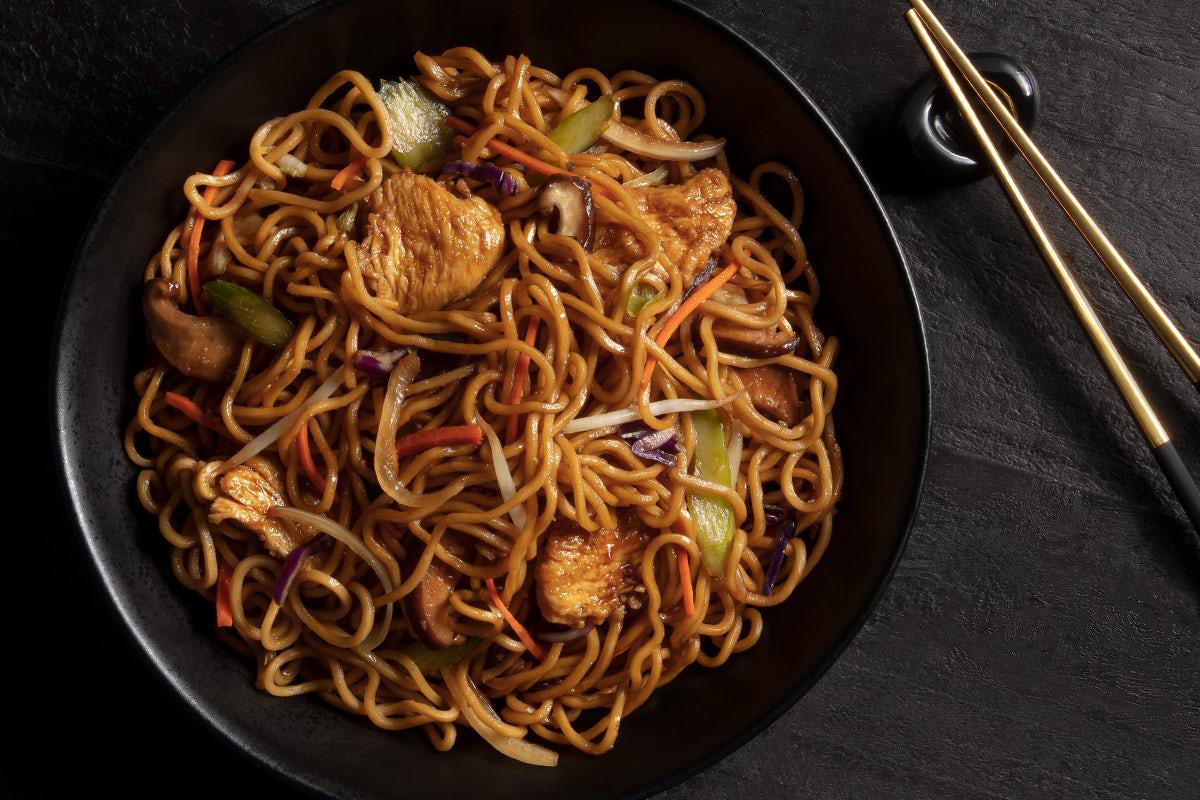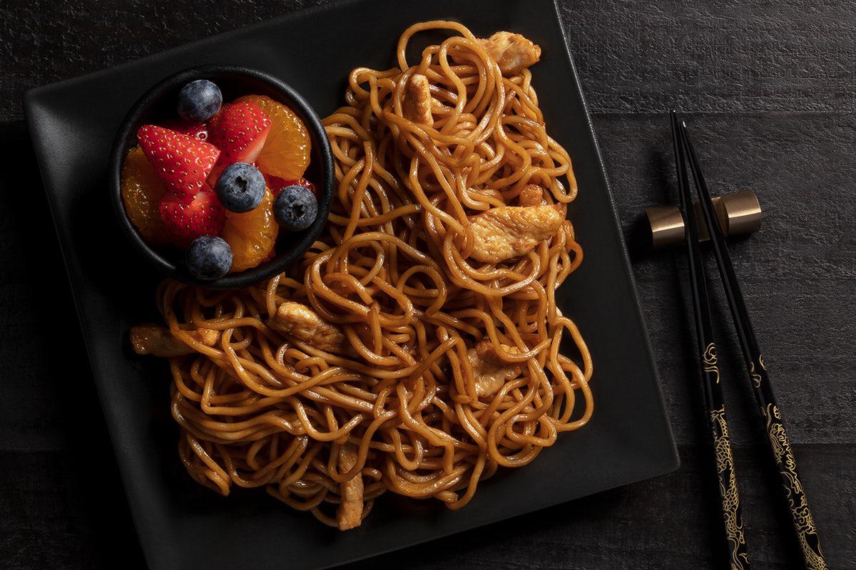 Wok-tossed noodles, mushrooms, Asian vegetables, savory soy sauce Platter serves 6-8